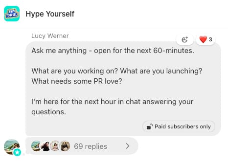 I ran several ‘Ask Me Anything’ sessions within the Substack chat for the paid subscribers.