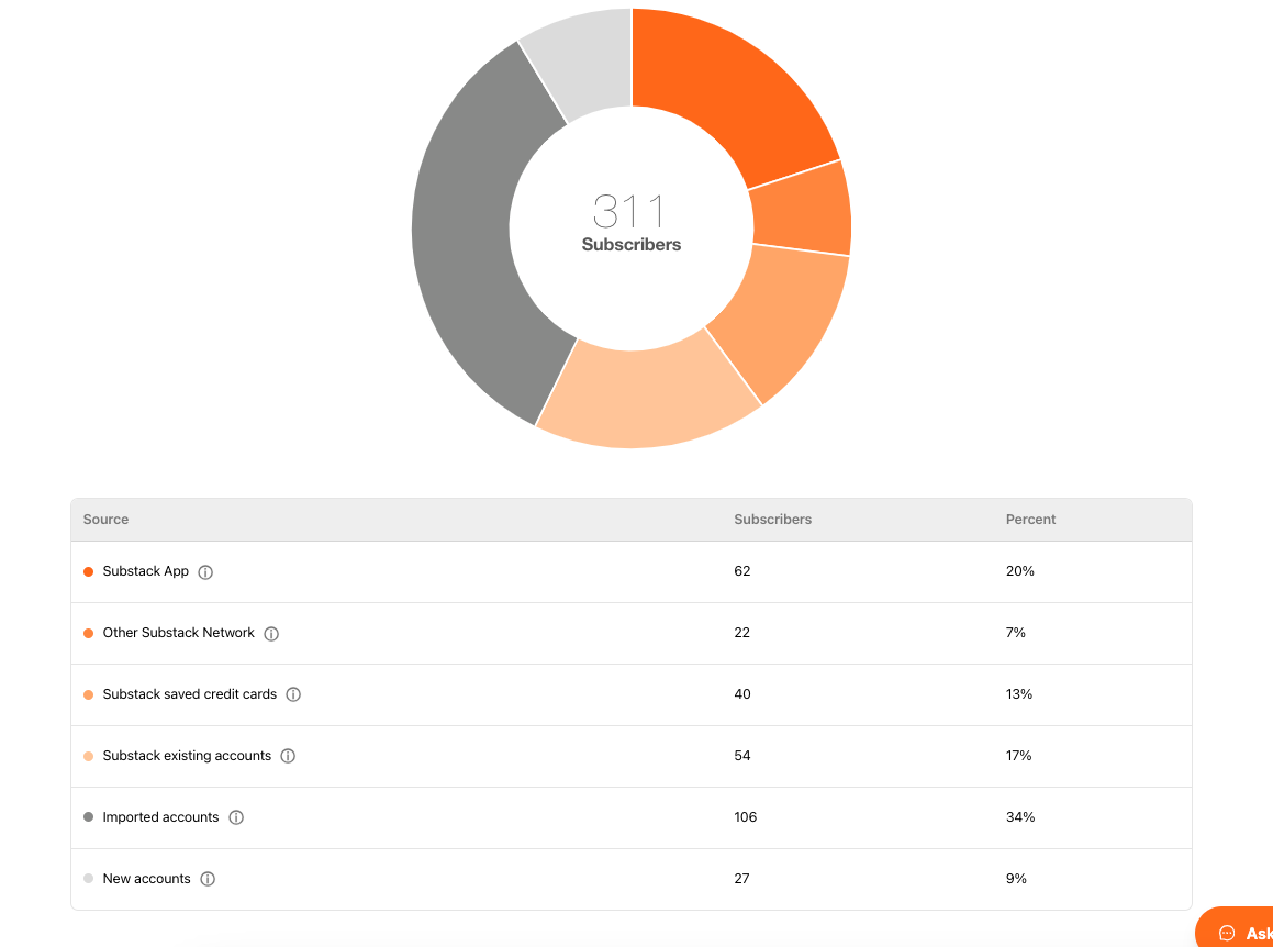 - If we combine imported and new accounts, that is nearly 43% of my paid subscriber list.