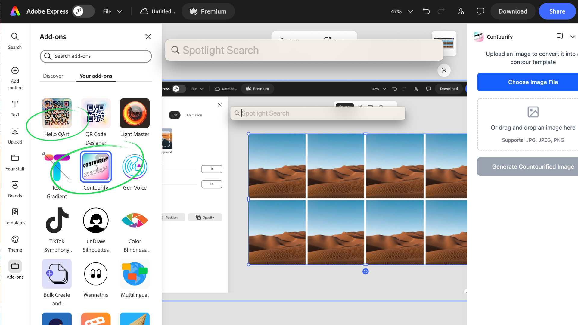 Do not worry about those desert views. Once you start adding your elements like text or images, you can select the layer and delete it.