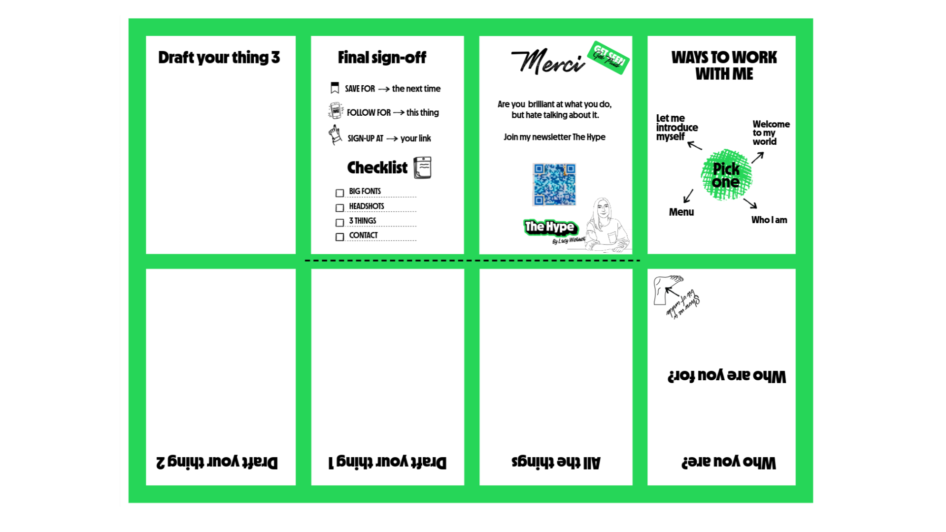 Zines are a natural fit for me. I've wanted to be a journalist and a writer since as long as I can remember. I often talk about 'think like a magazine' when it comes to your personal brand, your “show a bit of ankle” content is basically your horoscope or recipe page.